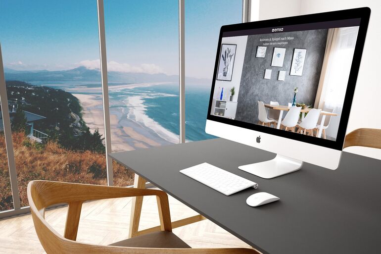 Für die EMSA Rahmenleisten AG haben wir eine hochmoderne Applikation entwickelt, mit der die Kunden Rahmen und Spiegel massgeschneidert bestellen können. Sämtliche Artikel können in einer «Raumvorschau» in einer Beispielumgebung oder dem eigenen Wohnzimmer betrachtet werden: Bildupload und Verhältnisberechnung machen es möglich.